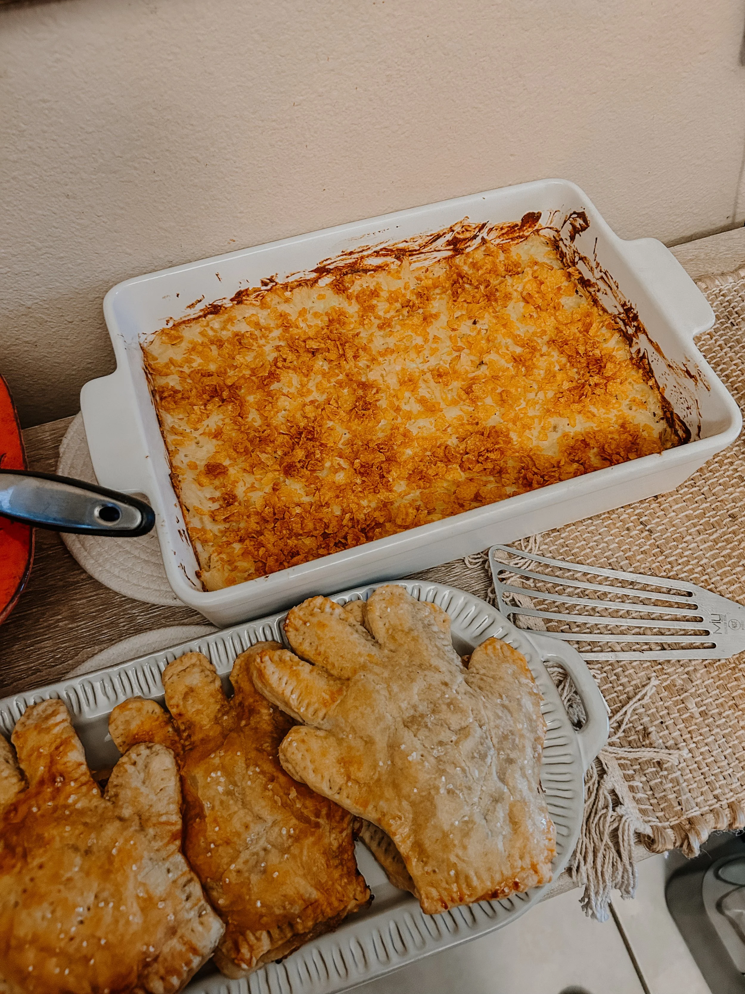 Step into a world of dark elegance and eerie flavors with my Addams Family-inspired Halloween dinner party! This year, I wanted to create a menu that would do justice to the deliciously creepy style of Morticia, Gomez, and the whole Addams clan. From Thing’s Handcrafted Pies, filled with apple, honey, and brie, to Mama’s Spécialité de la Maison—a rich roast beef with roasted root veggies—the dishes were as intriguing as they were delicious. And what Addams Family feast would be complete without Funeral Potatoes as a side? The meal was topped off with a hauntingly crimson Rose Shirley Temple and Wednesday’s Samoa Pie, a dangerously decadent dessert with layers of caramel, chocolate, and coconut. Join me as I walk you through the recipes, each as spooky and satisfying as the last.