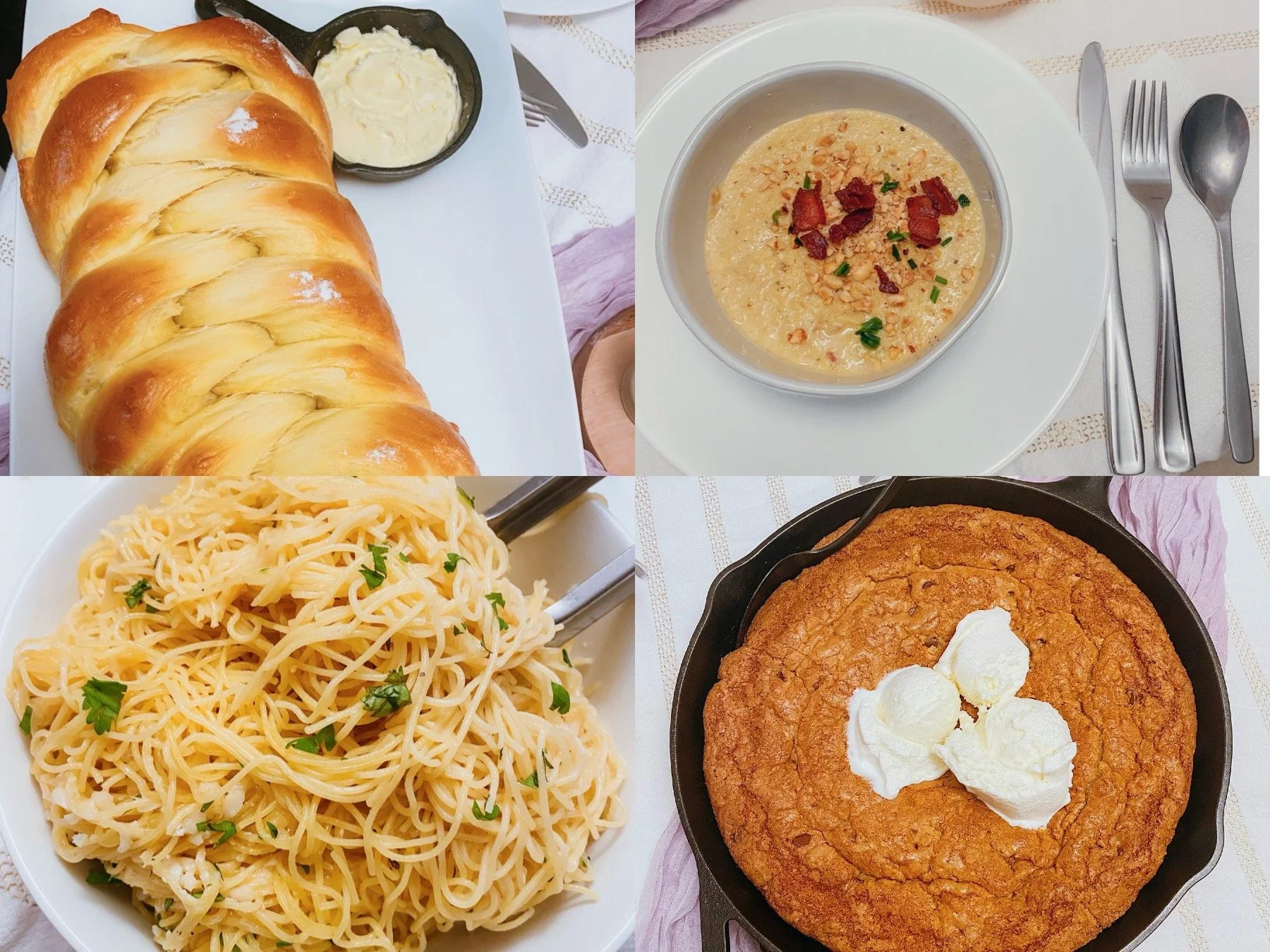 I baked braided Challah bread to resemble Rapunzel’s hair when the little girls braid it all pretty in the Kingdom. (Mine came out a bit underdone, but was still very tasty!) I paired the bread with a mini cast iron skillet of butter.